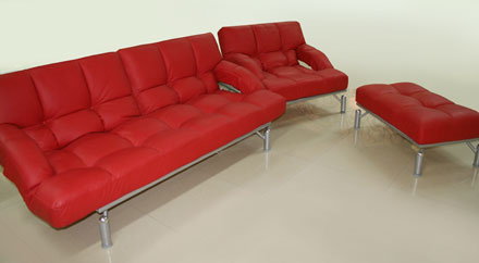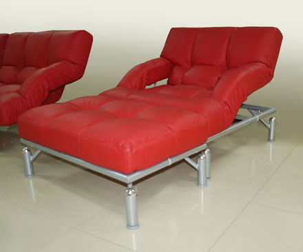 Спинка дивана разделена на две части, которые фиксируются в пяти положениях. В основе дивана находится металлический каркас, матрац из латекса с полиуретаном, модель обладает функцией подъема и опускания подлокотников при раскладывании.